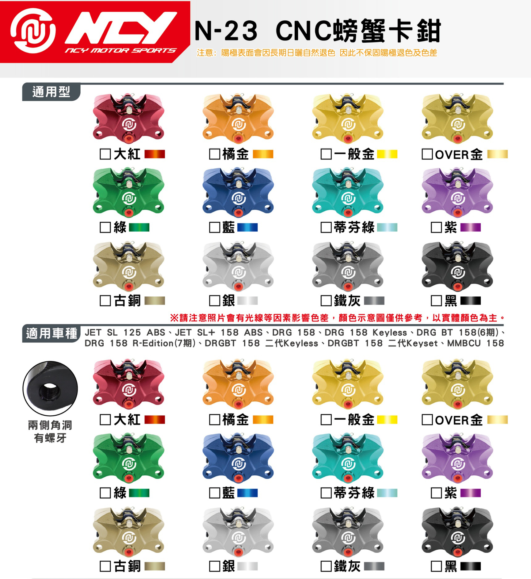 2025-10-13 螃蟹卡鉗也可以訂製顏色唷! 對四卡鉗可以訂製顏色後 很多車友詢問阿編 「那螃蟹可以嗎? 」 可以!! 這就來了 提供大家選色表做為參考 無論是通用型螃蟹卡鉗或是 JETSL/DRG/MMBCU專用款 都沒有問題的啦! #ncy #螃蟹卡鉗 #螃卡 #螃蟹 #煞車 #改裝 #台灣製 #MIT #選色 #客製 #陽極 #caliper #對二 #キャリパス| 回上一頁