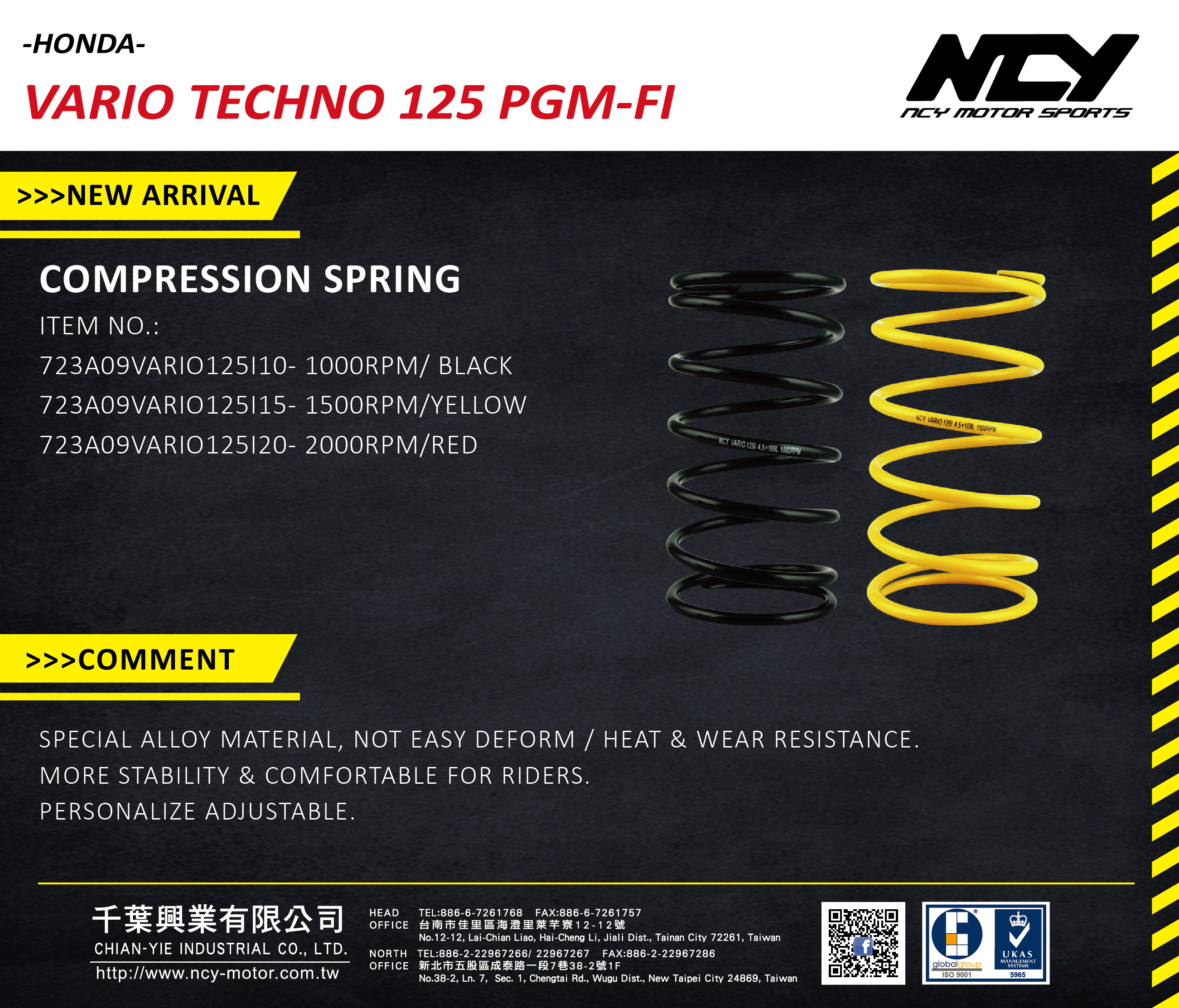 News Holiday Products Info News-- Products Info NCY Motorsports > News 2018-08-01 Compression Spring For VARIO 125I Back